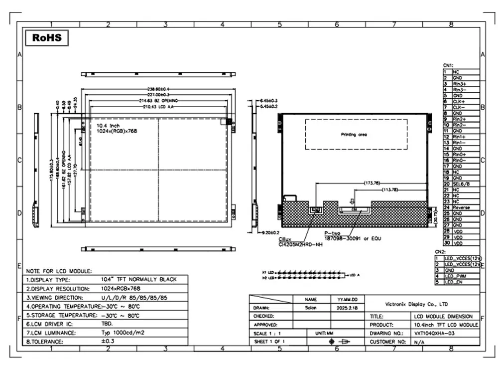 Under intelligensåldern tillåter TFT -modulen oss att presentera nödvändiga data i visuella format. Kvaliteten på TFT -modulen har en betydande inverkan på dess tillämpningar. Vilka är fördelarna med Victronix 10,4 tum 1024 × 768 LVD -skivor med hög ljusstyrka TFT -modul? För det första använder den 1000 CD/m² hög ljusstyrka med IPS -teknik för tydlig visning under direkt solljus, ett 1000: 1 -kontrastförhållande och en 80% enhetlighet för livliga, exakta bilder. För det andra stöder det ett 6/8-bitars LVD-gränssnitt med visningsrotationskontroll. Dessutom har den en 2 × 13 vita lysdioder bakgrundsbelysning med en livslängd på 50 000 timmar (behåller 50% ljusstyrka), vilket säkerställer tydlighet och användbarhet i olika ljusförhållanden. Den genomgår också rigorösa tester, inklusive 96 timmars hög/låg temperatur drift/lagring, fuktighet (60 ° C/90% RH) och termiska cykeltester så att den kan fungera effektivt över ett omfattande temperaturintervall av -30 ° C till +80 ° C.
